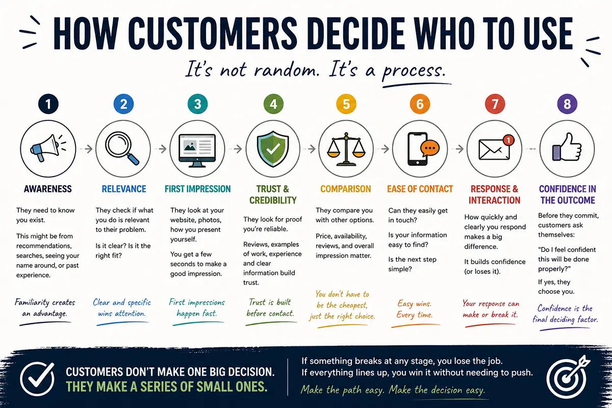 Once you understand it, a lot of things start to make more sense. Why some enquiries convert. Why others disappear. Why you lose work you thought you had.